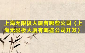 如果您需要了解上海无限极大厦内具体的公司名单,建议直接联系大厦管理处或通过大厦的官方网站查询最新的租户名单。您也可以通过网络搜索或咨询当地的商业信息服务机构来获取相关信息。