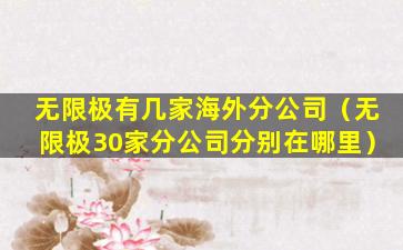 无限极(Infinitus)是一家中国的健康产品公司,隶属于香港李锦记集团。无限极主要在中国大陆、香港、澳门、台湾以及东南亚等地区开展业务。截至我的知识更新日期(2023年),无限极在海外的分公司主要分布在以下几个地区: