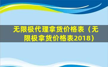 无限极是一家中国的直销公司,主要销售健康食品、个人护理产品等。如果您想了解无限极代理的拿货价格表,通常需要直接联系无限极公司或其授权的代理商获取。直销公司的价格政策和拿货价格通常是内部信息,不会公开发布在互联网上。