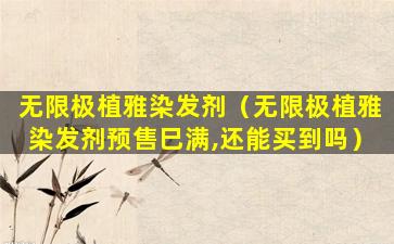 截至我所知的信息截止日期(2023年),无限极并没有特别著名的染发产品系列,因此“植雅染发剂”可能是一个较新的产品或者是一个地区性的产品。如果您想了解更多关于该产品的信息,建议直接访问无限极的官方网站或联系其客服获取最新的产品信息和使用说明。