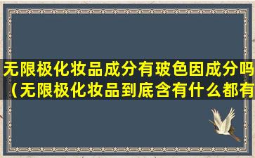 无限极(Infinitus)是一家中国的健康产品公司,隶属于李锦记健康产品集团。无限极提供多种健康产品,包括化妆品。关于无限极化妆品的具体成分,需要查看每款产品的具体成分列表,因为不同产品可能含有不同的成分。