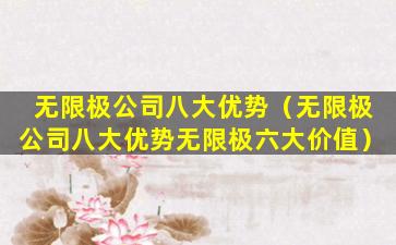 无限极(Infinitus)是一家中国的健康产品公司,隶属于香港李锦记集团。无限极以直销模式销售其产品,主要集中在健康食品、个人护理和家居护理产品。以下是无限极公司的一些优势: