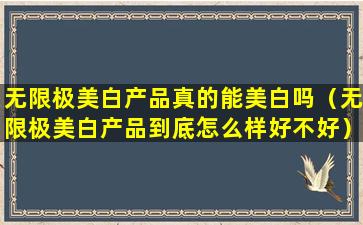 关于无限极美白产品的效果,我无法提供具体的评价,因为这需要基于科学研究和用户反馈来综合判断。在中国,所有化妆品和保健品都必须遵守国家相关法律法规,确保产品的安全性和有效性。消费者在选择美白产品时,应当关注产品是否具有合法的生产许可和质量检验报告,同时也可以参考其他消费者的使用反馈。