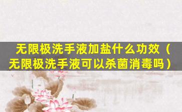 无限极洗手液加盐并没有官方推荐或说明的功效。通常情况下,洗手液的主要作用是清洁手部,去除污垢和细菌。而盐在某些情况下可以作为天然的消毒剂,具有一定的抗菌作用。但是,将盐加入洗手液中并不是一个常见的做法,也没有科学证据表明这样做会增强洗手液的清洁或消毒效果。