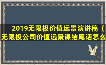很抱歉,我无法提供关于“2019无限极价值远景演讲稿”的具体内容,因为这可能涉及到版权问题。不过,我可以提供一些关于如何撰写关于公司价值远景演讲稿的一般性建议。