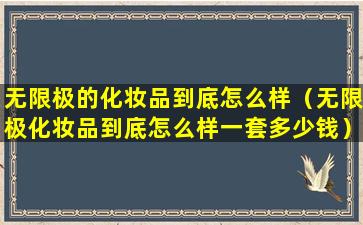 无限极(Infinitus)是一家中国的健康产品公司,隶属于香港李锦记集团。无限极提供多种健康产品,包括化妆品、个人护理产品、保健食品等。关于无限极化妆品的质量,这通常取决于个人使用后的感受和评价,不同的人可能会有不同的体验。