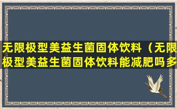 请注意,以上信息是基于一般性的益生菌产品知识,具体到“无限极型美益生菌固体饮料”这一产品,建议直接查看产品包装上的详细信息或咨询生产厂家以获取最准确的产品信息。同时,由于我无法访问最新的数据和产品信息,以上内容可能不包含最新的产品详情。