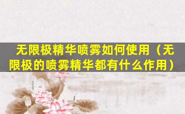 无限极(Infinitus)是一家中国的健康产品公司,以生产中草药健康产品而闻名。关于无限极的喷雾精华,由于产品线可能会有更新和变化,具体的产品信息需要参考官方网站或官方授权的销售渠道提供的信息。