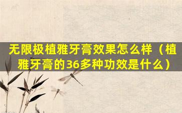 无限极植雅牙膏是无限极公司生产的一款牙膏产品,它通常宣称含有多种植物成分,旨在提供口腔护理和清新口气。关于其效果,这通常取决于个人的口腔状况和使用习惯。