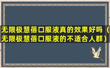 无限极慧蓓口服液是无限极公司生产的一款产品,根据产品说明,它主要针对儿童的营养补充,含有多种维生素和矿物质,旨在帮助儿童增强体质,促进健康成长。关于该产品的具体功效和作用,需要根据官方提供的产品说明书或者经过官方认证的信息来确定。