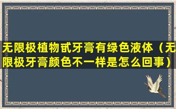 无限极植物甙牙膏是一款含有植物甙成分的牙膏,它通常含有多种植物提取物,旨在提供口腔护理和清新口气。如果您提到的“绿色液体”是指牙膏中的某种成分或者在使用过程中出现的现象,这可能是牙膏中的植物提取物或者色素。
