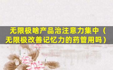 关于“无限极什么产品治注意力集中”,无限极并没有专门针对注意力集中的产品。注意力不集中可能与多种因素有关,包括但不限于睡眠不足、营养不良、压力过大、缺乏运动等。如果想要改善注意力集中问题,建议采取以下措施: