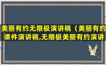 很抱歉,我无法提供具体的“美丽有约课件演讲稿”或“无限极美丽有约演讲稿”,因为这些内容可能受到版权保护,或者需要特定的授权才能分享。不过,我可以提供一些撰写演讲稿的一般性建议和结构,帮助你准备自己的演讲稿。