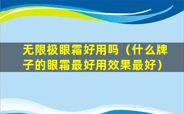 无限极(Infinitus)是中国的一个健康产品品牌,隶属于李锦记健康产品集团。无限极提供多种健康和美容产品,包括护肤品。关于无限极眼霜是否好用,这主要取决于个人的肤质、使用习惯以及对产品的个人体验。