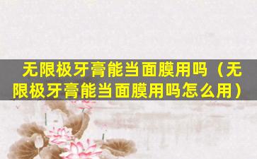无限极牙膏通常是用于口腔清洁的产品,其成分和配方是针对口腔环境设计的。虽然有些牙膏可能含有美白或者清洁成分,但并不推荐将牙膏作为面膜使用。原因如下: