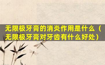 具体到无限极牙膏的成分和消炎效果,需要查看该产品的具体成分列表和官方说明。不同品牌和型号的牙膏可能含有不同的成分,因此消炎效果也会有所不同。在使用任何口腔护理产品时,建议遵循产品说明书上的指导,并在有需要时咨询专业的牙科医生。