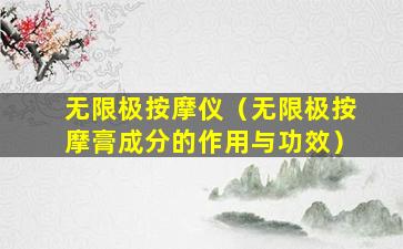 请注意,以上信息是基于一般按摩膏成分的描述,具体到无限极按摩膏的成分和功效,建议直接查阅该产品的官方说明或咨询无限极公司的客服以获取准确信息。