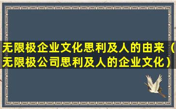 无限极是一家中国的直销公司,主要销售健康食品、个人护理品等产品。"思利及人"是无限极的企业文化理念之一,强调在追求利润的同时,也要考虑到对社会和消费者的责任。