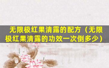具体的配方和成分比例是企业的商业机密,通常不会对外公开。如果您需要了解无限极红果清露的详细配方,建议直接咨询无限极公司或查看产品包装上的成分列表。请注意,任何健康产品在使用前应咨询专业医疗人员,以确保其适合您的健康状况。