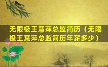 关于“王慧萍总监”的具体信息,由于没有提供足够的信息,很难确定您指的是哪位王慧萍。无限极作为一家大型企业,可能有多个部门和层级的管理人员,而“总监”这个职位在不同公司和不同部门中的职责和级别可能有所不同。