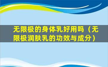 关于“无限极的身体乳好用吗”,这个问题的答案可能因人而异,因为每个人的皮肤类型、偏好和反应都是不同的。以下是一些评估身体乳是否适合自己的因素: