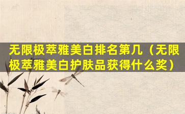 截至我的知识更新日期(2023年),关于“无限极萃雅美白”产品的具体排名信息并不明确,因为这类排名可能会受到多种因素的影响,包括但不限于市场销量、用户评价、专业评测等。不同的排名机构或平台可能会有不同的评价标准和方法,因此排名结果可能会有所差异。