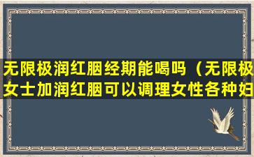 无限极润红胭是一种保健品,其主要成分和功效通常会在产品说明书或官方宣传中有所介绍。关于“无限极润红胭经期能喝吗”的问题,我无法提供具体的答案,因为这需要根据产品的具体成分和个人的身体状况来判断。