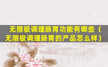 无限极是一家中国的保健品公司,其产品线包括多种针对不同健康问题的保健品。关于“无限极调理肠胃功能”的产品,通常指的是一些旨在帮助改善消化系统健康、缓解肠胃不适的保健品。以下是一些可能包含的功能和成分: