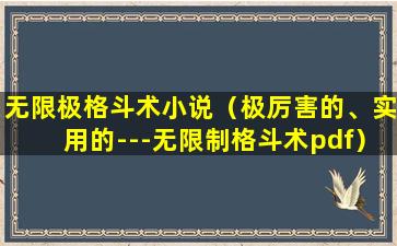 “无限极格斗术”似乎是一个结合了“无限极”和“格斗术”的词汇,但目前并没有一个广为人知的小说或文学作品以这个名字命名。如果你是在寻找关于格斗术的小说,那么可能需要更具体的信息或者寻找其他相关的小说。