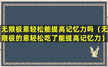 无限极(Infinitus)是一家中国的健康产品公司,它生产和销售各种保健品、个人护理产品和家居用品。关于“无限极意轻松”是否能提高记忆力,这需要基于科学研究和产品成分来进行评估。