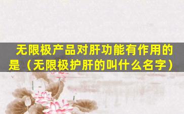 无限极(Infinitus)是一家中国的保健品公司,隶属于李锦记健康产品集团。无限极生产多种保健产品,包括针对肝脏健康的护肝产品。截至我所知的信息,无限极的护肝产品可能被称为“无限极护肝宝”或其他类似的名称。具体的产品名称可能会随着时间和市场策略的变化而变化。