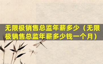 如果您想了解无限极销售总监的平均年薪,可能需要通过行业报告、招聘网站上的职位描述或者直接咨询无限极公司内部人士来获取更准确的信息。但请注意,这些信息可能会随时间而变化,并且可能因个人情况而异。