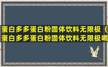 关于“蛋白多多蛋白粉固体饮料无限极”这一产品,目前没有足够的信息来确认其真实性或具体成分。在中国,所有食品和保健品都必须遵守国家市场监督管理总局的相关规定,并通过正规的审批流程。消费者在购买此类产品时,应确保其来源可靠,查看是否有合法的生产许可和质量检验报告。