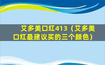 艾多美(Etude House)是韩国的一个化妆品品牌,以其可爱的包装和亲民的价格受到许多消费者的喜爱。关于您提到的“艾多美口红413”,这可能是指Etude House的一款口红产品,其中的“413”可能是该产品的色号。