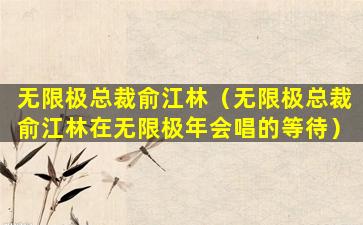 无限极是一家中国的健康产品公司,其总裁俞江林在公司的年会或其他活动中可能会进行表演或演讲。如果您提到的“等待”是指某首歌曲,那么这可能是俞江林在年会上演唱的一首歌曲。