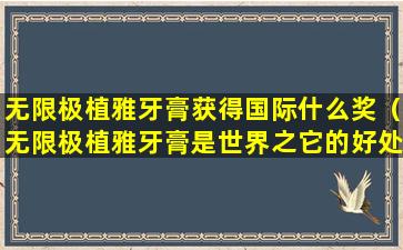 如果您想了解无限极植雅牙膏是否获得过国际奖项,建议直接访问无限极的官方网站或联系他们的客服部门获取最准确的信息。同时,也可以通过搜索引擎查询相关的新闻报道或评奖机构的公告。