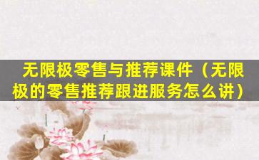 很抱歉,我无法提供关于“无限极零售与推荐课件”的具体内容,因为这可能涉及商业机密或版权保护的材料。如果您需要了解关于零售或推荐策略的一般信息,我可以提供一些基本的指导和建议。
