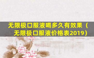 无限极是一家中国的健康产品公司,其产品线包括多种口服液、保健品等。关于“无限极口服液价格表2019”,由于我无法提供实时的价格信息,建议您直接访问无限极的官方网站或联系其客服获取最新的产品价格信息。