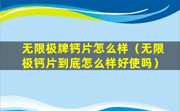 关于“无限极钙片到底怎么样好使吗”,这个问题需要从几个方面来考虑: