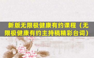 由于我无法访问最新的数据,我无法提供关于“新版无限极健康有约课程”的具体内容或更新信息。如果您想了解更多关于这个课程的信息,建议直接访问无限极的官方网站或联系他们的客服获取最新、最准确的信息。