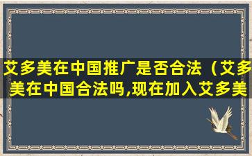 截至我的知识更新日期(2023年),艾多美在中国是否合法,需要查看其是否获得了中国政府的直销许可。如果艾多美在中国拥有合法的直销许可证,那么它在中国开展业务是合法的。但是,如果没有获得许可,那么其在中国开展直销活动就是非法的。