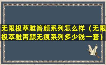无限极(Infinitus)是一个中国的健康产品品牌,隶属于李锦记健康产品集团。萃雅菁颜无痕系列是无限极推出的护肤产品系列之一,主要针对抗衰老和肌肤修复。