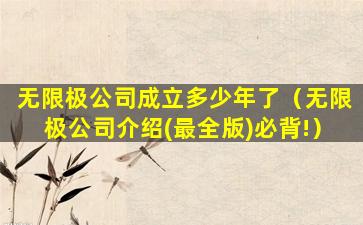 无限极(Infinitus)是一家中国的健康产品公司,成立于1992年。因此,截至我的知识更新日期(2023年),无限极公司已经成立了大约31年。无限极是李锦记健康产品集团的一部分,专注于中草药健康产品的研发、生产和销售。