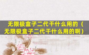 请注意,我的知识截止日期是2023年4月,如果无限极盒子二代在此之后有新的功能或更新,我可能不会知晓。建议查看无限极公司的官方网站或联系客服获取最新信息。