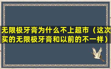 无限极(Infinitus)是一家中国的健康产品公司,隶属于香港李锦记集团。无限极的产品线包括保健品、个人护理品、家居护理品等。关于无限极牙膏为什么不在超市销售,可能有以下几个原因: