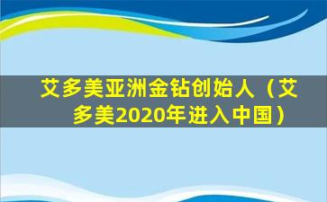 截至我的知识更新日期(2023年),"艾多美亚洲金钻创始人"并不是一个广为人知的称号或者公认的职位。艾多美(Amway)是一家全球知名的直销公司,以销售健康、美容和个人护理产品而闻名。它在全球多个国家和地区都有业务,包括亚洲。