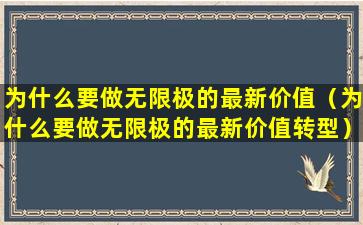 无限极是一家中国的直销公司,主要从事健康产品的研发、生产和销售。关于“为什么要做无限极的最新价值”,这个问题可能涉及到个人或企业对于无限极产品的市场定位、品牌价值、产品创新等方面的考量。以下是一些可能的原因: