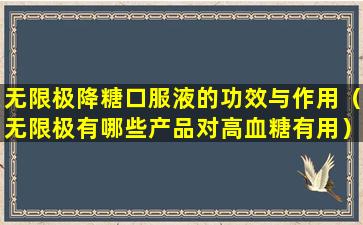 无限极是一家中国的保健品公司,其产品线包括多种健康食品和营养补充品。关于“无限极降糖口服液”的功效与作用,首先需要明确的是,任何健康产品或药物的功效和作用都应当基于科学研究和临床试验的结果。