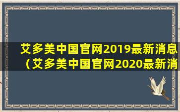 截至我的知识更新日期在2023年,关于“艾多美中国官网2020最新消息”的具体内容,我无法提供实时信息。艾多美(Amway)是一家全球知名的直销公司,主要销售健康、美容和家居护理产品。如果您想了解艾多美中国的最新消息,建议直接访问艾多美中国的官方网站或联系其官方客服获取最新、最准确的信息。同时,请注意甄别网络上的信息,确保获取信息的渠道是官方或可信赖的。