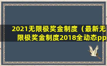 无限极是一家中国的直销公司,主要销售健康产品。关于“2021无限极奖金制度”,由于我无法访问最新的数据和信息,因此无法提供具体的奖金制度细节。通常,直销公司的奖金制度会包括以下几个方面: